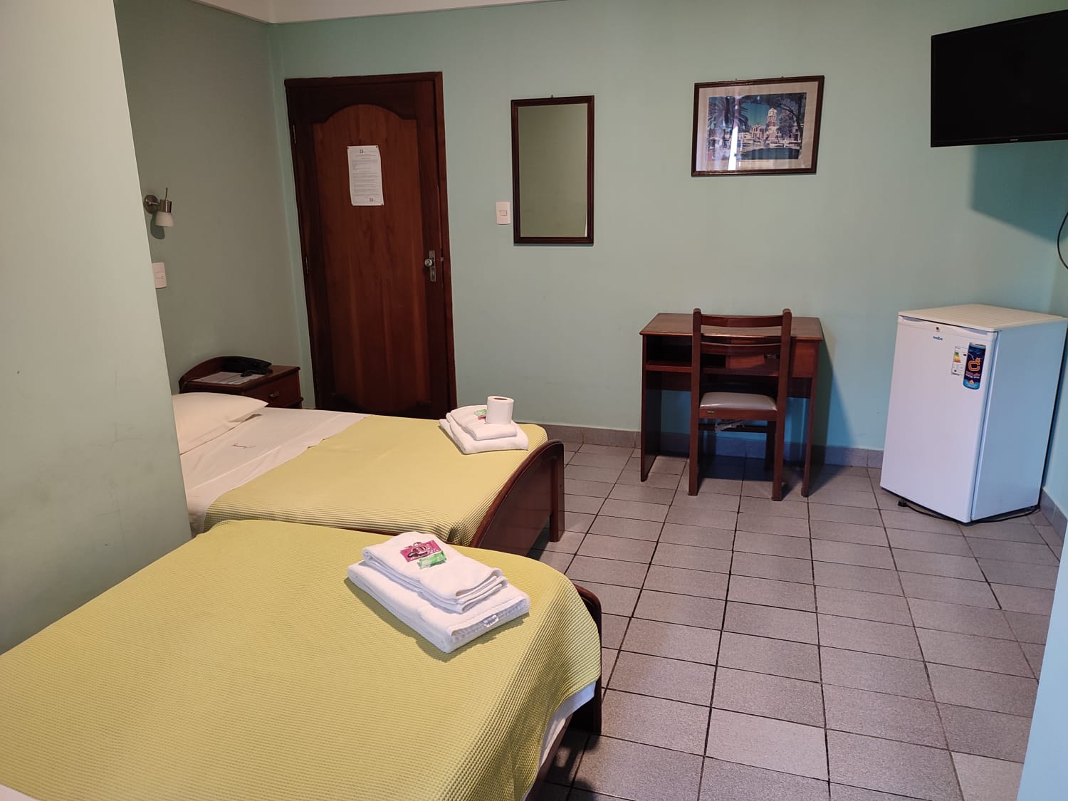 Todas las habitaciones cuentan con baño privado, Agua caliente las 24 horas (termotanque a gas), TV Cable, aire acondicionado frio/calor, wi-fi, frigobar. Desayuno buffet, garaje, servicio de ascensor incluido.
